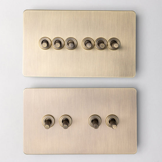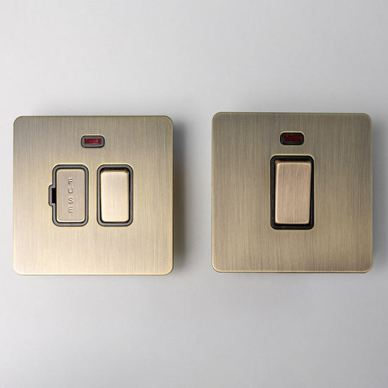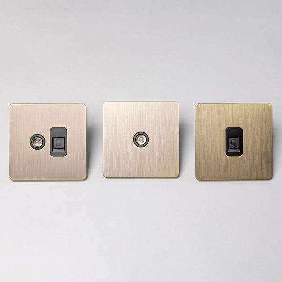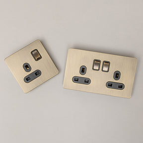 - Plug Sockets: Single and double plug sockets provide everyday convenience with the added flair of a antique brass finish.