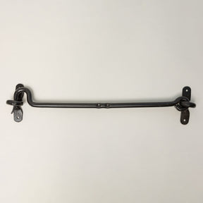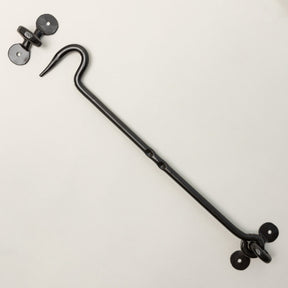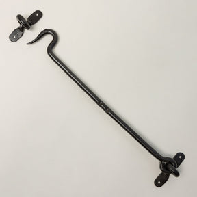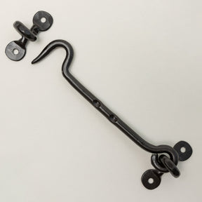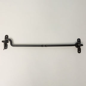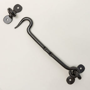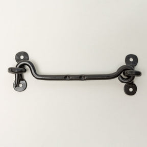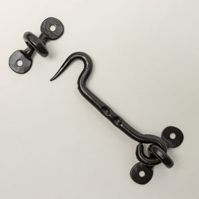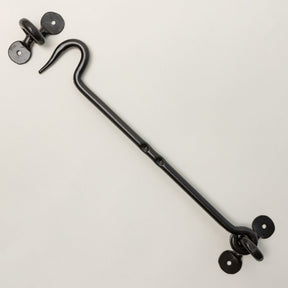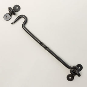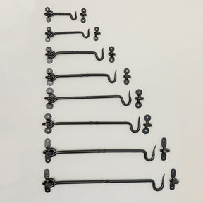 Our black cabin hooks are available in 8 sizes is a compact and stylish solution for securing doors, windows, or shutters. Featuring a classic shepherd's crook design, this hook-and-eye latch is crafted from durable mild steel and finished with a sleek black powder coating for a timeless look. They provide both functionality and vintage charm. Supplied with matching wood screws for easy installation.