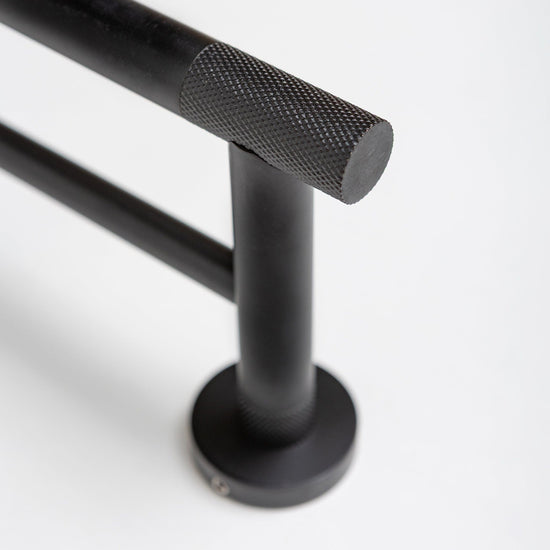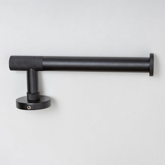 Elevate your bathroom with our Matte Black Knurled Collection — a refined trio designed for both function and style. Featuring a toilet roll holder, robe hook, and towel rail, this coordinated range brings a modern, industrial edge to your space.