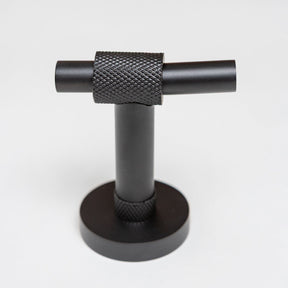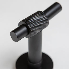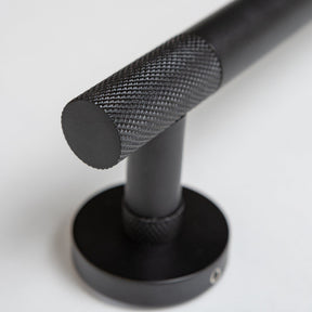 Each piece is crafted from premium stainless steel and finished in a sleek matte black coating, offering durability and resistance to moisture and wear. The distinctive knurled texture adds a tactile, architectural detail that enhances grip while providing a bold, contemporary aesthetic.
