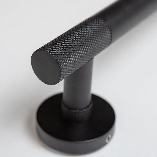 Bring form and function together with the Matte Black Knurled Bathroom Range — where every detail counts.
