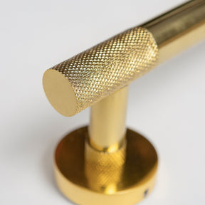 Elevate your bathroom with our Brass Finish Knurled Collection — a refined trio designed for both function and style. Featuring a toilet roll holder, robe hook, and towel rail, this coordinated range brings a modern, industrial edge to your space.