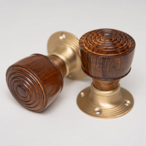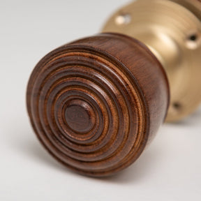 Ringed Door Knobs - Rosewood & Satin Brass (Pair) | Thumbturns & Latches