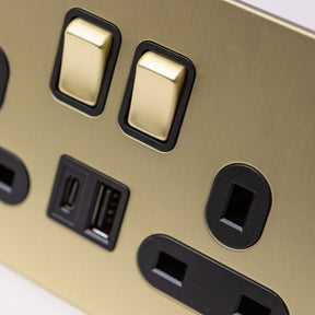 - Plug Sockets: Single and double plug sockets provide everyday convenience with the added flair of a satin brass finish.