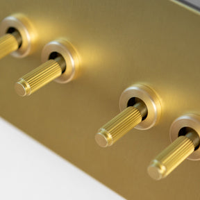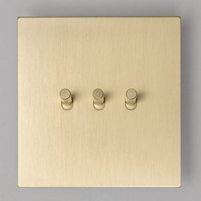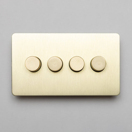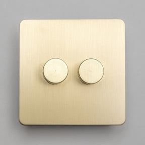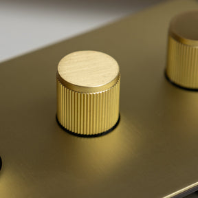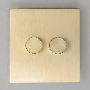 This collection is the epitome of understated luxury, perfect for those who value design as much as functionality. The satin brass finish resists fingerprints and tarnishing, ensuring a pristine look for years to come. The knurled detailing on the dimmer switches adds a contemporary twist, making each piece a true statement.