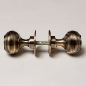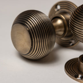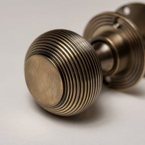 Solid Brass Door Knobs - Beehive Antique Brass (Pair) | Thumbturns & Latches