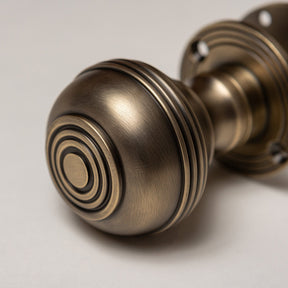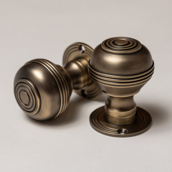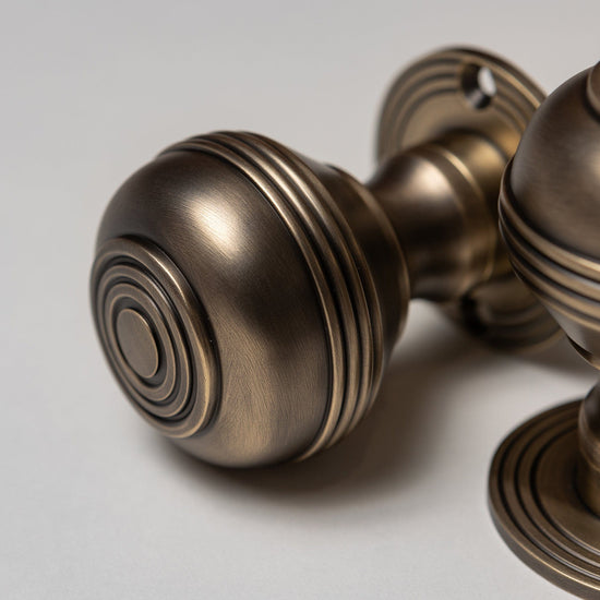 Solid Brass Door Knobs - Ringed Antique Brass (Pair) | Thumbturns & Latches