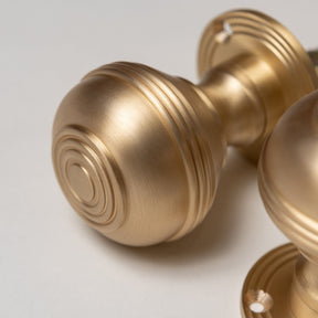 Solid Brass Door Knobs - Ringed Satin Brass (Pair) | Thumbturns & Latches