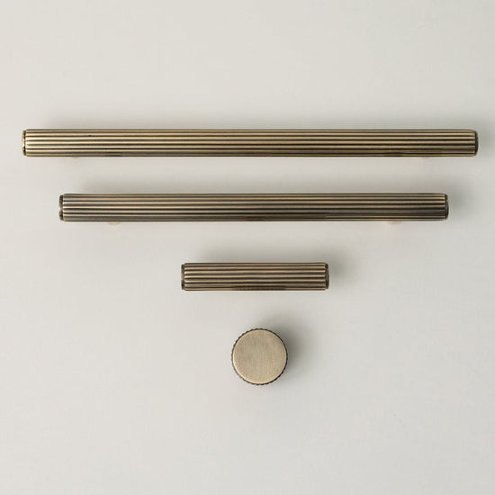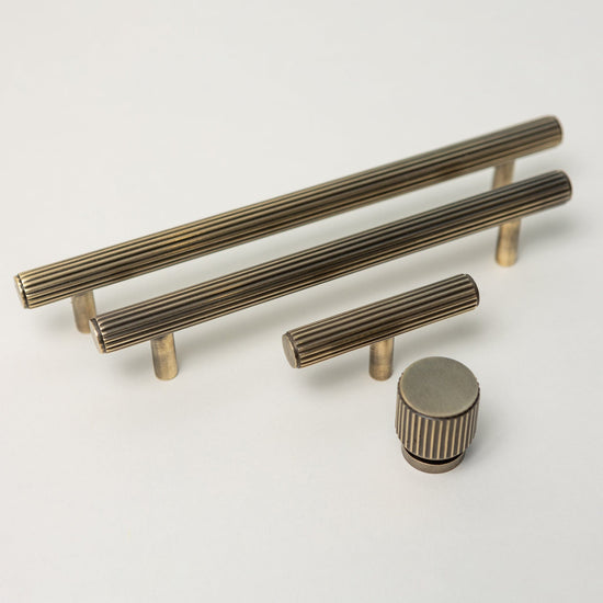 Solid Brass Straight Knurled Kitchen Pull Handles & Knobs - Antique Brass Finish