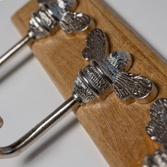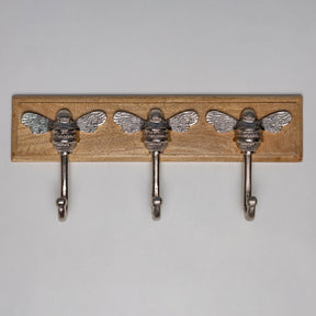 Wooden Hook Rack - 3 x Brass bee Coat Hook - Nickel Finish - Iron